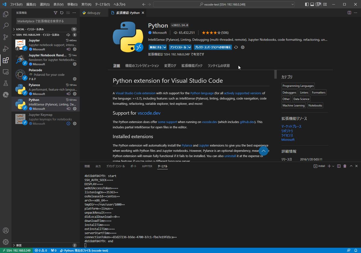 CentOS7 + vscode(remote development)でpythonのデバッガーが動かなくなった