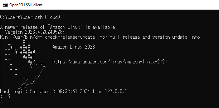 コマンドプロンプトからSSM経由でCloud9への接続テストをする